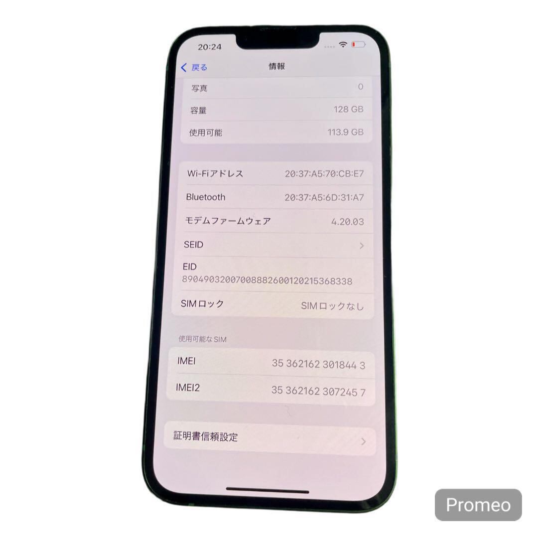 極美品 Apple iPhone 13 グリーン 128GB docomo